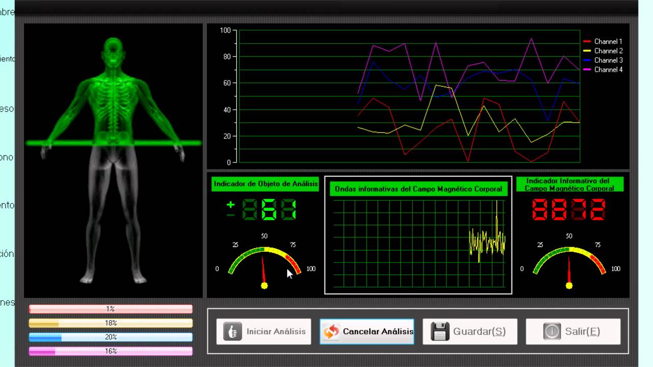 Es un Instrumento diseñado para medir, predecir y prevenir cualquier enfermedad en el cuerpo humano. Mediante la colocación de unos sensores en la palma de tu mano, se recogerán distintos datos médicos en pocos minutos. Las frecuencias y la energía magnética débil del cuerpo humano son recogidos a través de un sensor, y después de la amplificación por parte del instrumento y del posterior tratamiento en el microprocesador, los datos se comparan con el espectro de resonancia cuántica estándar de las enfermedades, la nutrición y otros indicadores incorporados en el instrumento para juzgar si las formas de onda de la muestra son irregulares utilizando el método de Fourier (espectro de frecuencias de una función).
