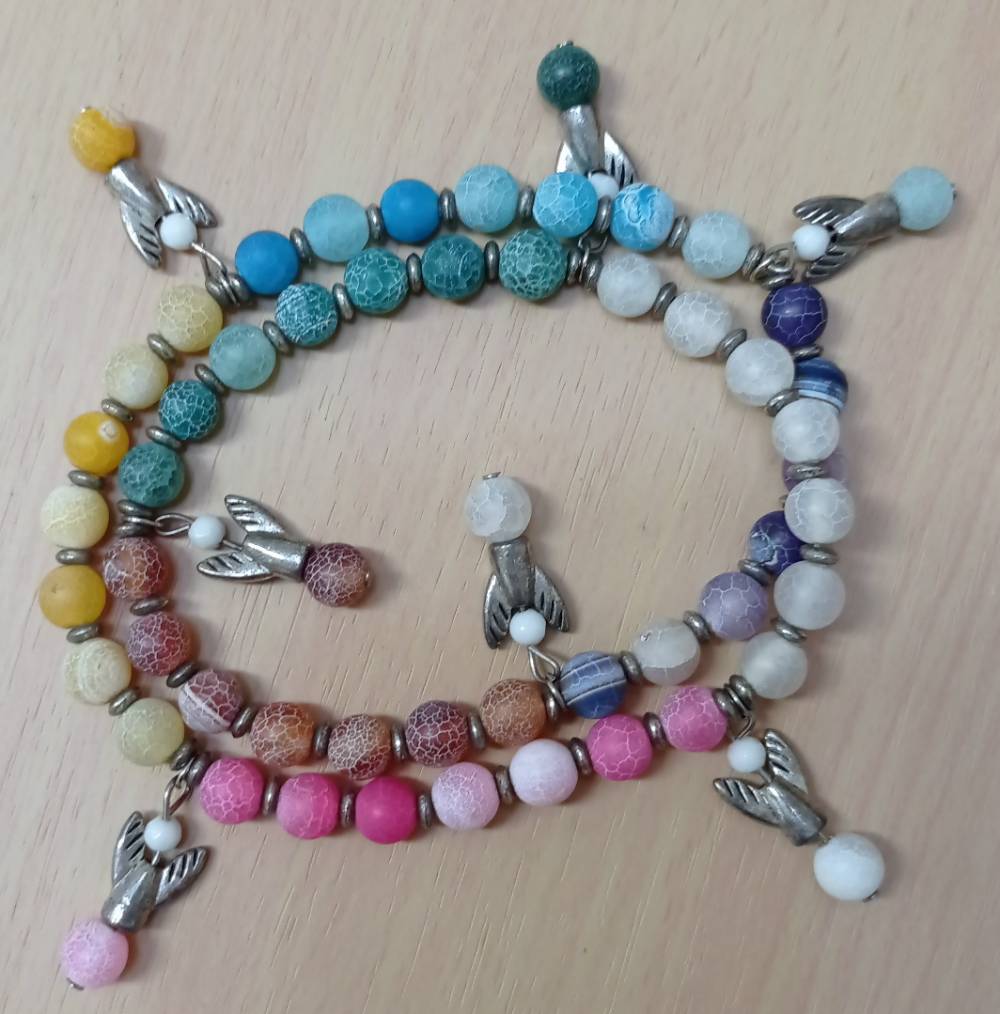 Esta realizado con piedras naturales, concretamente ágatas en los diferentes colores de los arcángeles. También se puede realizar en cristal. Precio 18€